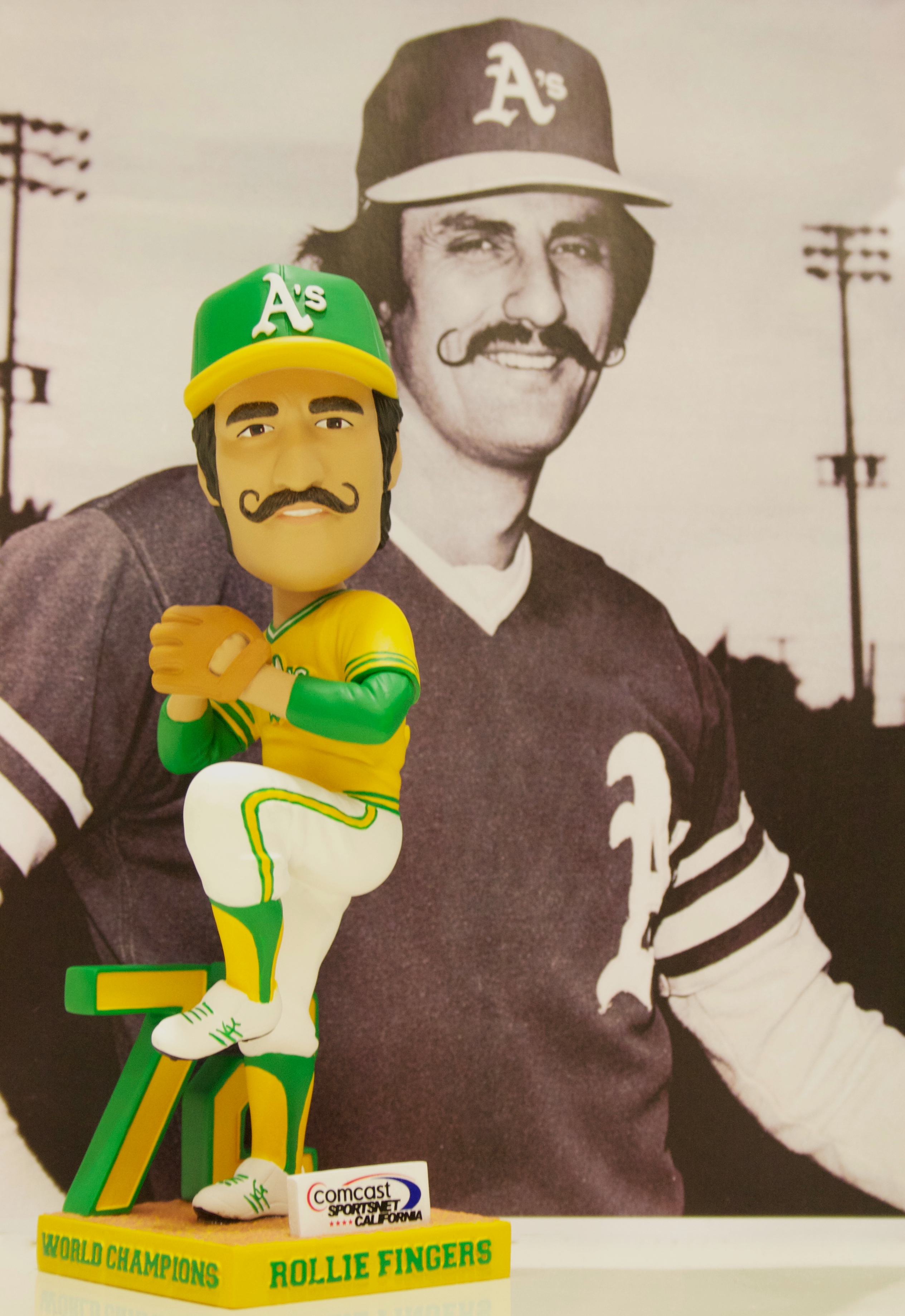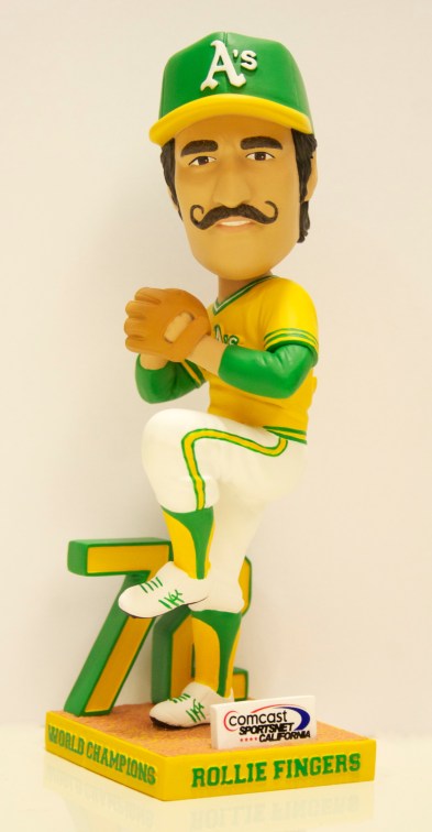 We got a sneak peek of one of the prime giveaways of the 2012 season: the Rollie Fingers bobblehead. Saturday, April 21st will be a memorable day not just because of the giveaway but because we’re honoring the 40th anniversary of the 1972 World Series Oakland A’s team. Mark your calendars for the April 21st game at 6:05PM vs. Cleveland and keep an eye out for more details on the reunion. In the meantime, enjoy these photos of the Rollie bobblehead!