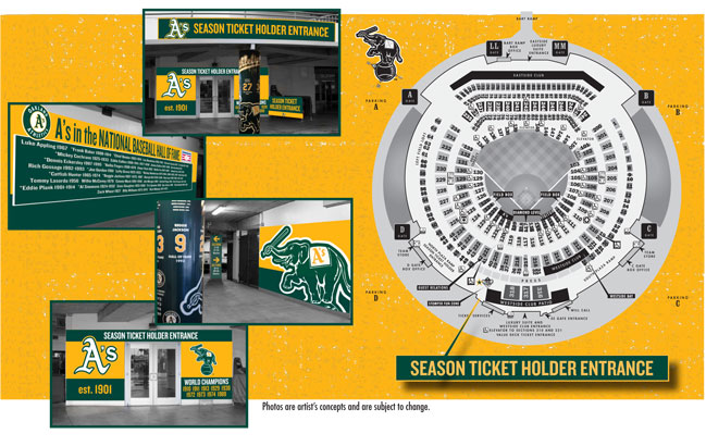 After months and months of negotiation and preparation, the A’s are happy to announce a new, major benefit to owning season tickets: the Season Ticket Holder entrance! Our ticket office has worked hard to bring it to fruition, and couldn’t be more excited to offer it to our loyal Season Ticket Holders. Please visit the information page HERE to read more and check out this rendering of what the entrance may look like: