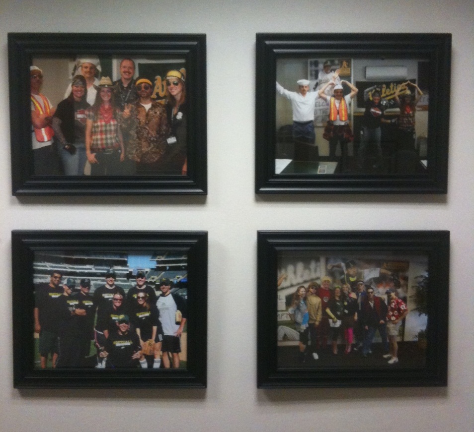 Check out our photos we put up! We’ve had some fun over the years with the different theme days. Clockwise from top-left: the entire Ticket Services crew on ’70s Turn-Back-The-Clock Day, Ticket Services doing the YMCA, everyone on ’80s Turn-Back-The-Clock Day and the Ticket Operations department at our company softball game.