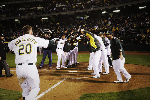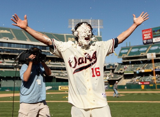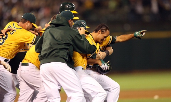 The A’s lead the league in walk off wins this year with 11! The craziest part about it is Coco Crisp was the first Athletic to contribute for 2 of those wins. How many different A’s are going to step up and win a game for the A’s? Here’s a photo collection of all of the walk off wins to this point: