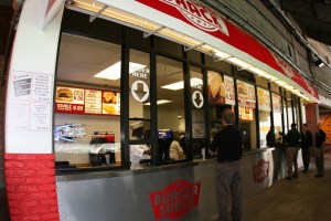 The Burger Shack opens tonight at the Oakland Coliseum. The establishment is located on the first level concourse behind Section 132. A lunchtime sampling of the menu by ticket sales and services employees put nothing but smiles on people’s faces. Cheeseburgers, French Fries, and Texas Grilled Cheese sandwiches stuffed those smiling faces. The Burger Shack will be open at tonight’s game and throughout the season. Tell them Ticket Services sent you. That won’t get you anything special, but it’ll be fun to say regardless.   Â