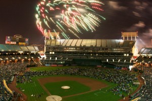 Walking into Ticket Services on Saturday, June 26, some of our Season Ticket Holders rubbed their eyes. “Did we just walk into a time machine?,” some thought. Not quite… but how cool would that be?! It was 1970s Turn-Back-The-Clock Night at The Coliseum. The entire game featured a ’70s theme – ballpark music, stick-on mustaches, a Joe Rudi jersey giveaway, a pregame ceremony honoring the A’s 1970s World Series Championship teams, and the amazing bright yellow uni’s worn by your Oakland Athletics. The night gave some of our fans the opportunity to dust off those boxes in the attic to see if they still fit into their old disco shirts and bellbottoms. Even your favorite Ticket Services Representatives joined in on the fun by dressing up. Can you guess who we were? Think: “Where it’s fun to stay.” Here’s a picture if you missed out on the far out fun and excitement: